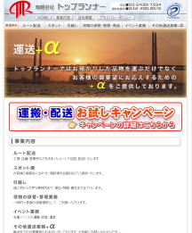 | 保有車両 : 10tウイングボディ 5台/4tウイングボディ/ 10台2tパネル車(箱車) 3台/2t幌車 3台 |